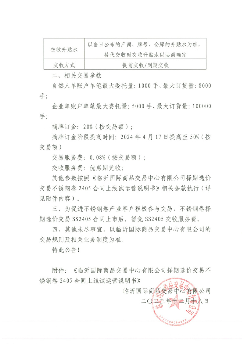 臨沂國際商品交易中心有限公司擇期選價交易不銹鋼卷2405合同上線試運營說明書.doc